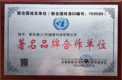 在2023年8月31日,爱思康通过层层选拔,在众多申请企业中脱颖而出,以超强的优势斩获吉雷斯奖/吉雷斯纪录,被联合国成员单位授予《著名品牌合作单位》!