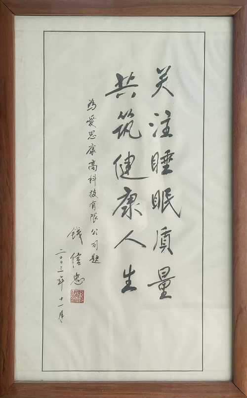 (前卫生部部长钱信忠为爱思康题词)