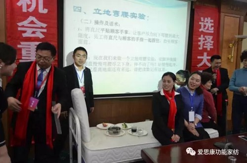 爱思康领导班子亲自上阵带领讲师团队,针对在功能寝具行业竞争日益激烈的市场环境、面对不断增长的个性化需求,针对经销商在终端遇到的问题进行了团队打造和创新营销等培训和分享。