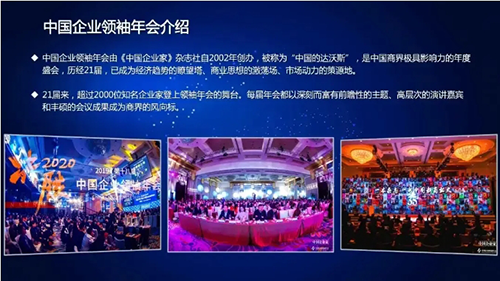 中国企业领袖年会由国内知名财经大刊《中国企业家》杂志社主办,被誉为“中国达沃斯”,不仅是弘扬企业家精神、传播企业家思想的平台,更是前瞻商业趋势、激荡创新思维的年度商业盛会,至今已成功举办22届。