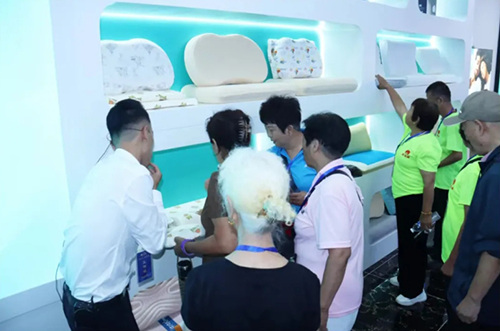 随后,贵宾团又陆续参观了研产基地中倾注心血打造的重磅之地——爱思康睡眠科技文化展厅。在讲解员的介绍下,贵宾团深入了解了由古至今的睡眠衍变,现代人的睡眠困境,以及环境对人的影响与作用。