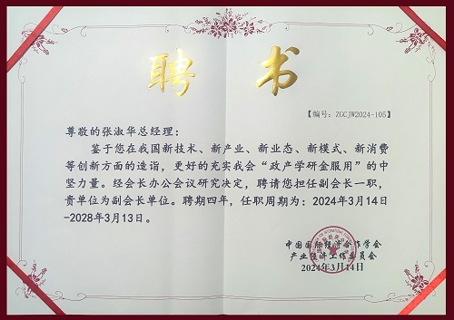 让我们共同祝贺张淑华总经理受聘这一重要职务。我们期待她在新的岗位上发挥重要作用,为中国国际经济合作学会产业经济工作委员会的发展做出积极贡献,同时也为中国产业经济的创新发展注入新的活力!