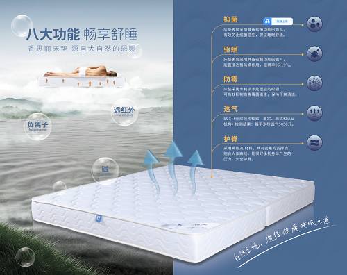 作为一家专注于提供舒适睡眠和健康需求的公司,爱思康功能床垫采用了先进的科学技术与自然元素相结合,并使用高品质、无毒、无刺激性的材料,通过严格检测,确保产品符合国家标准。这不仅满足了人们对于睡眠健康与品质生活的期待,更让人们领悟到自然环境对生命的影响和重要性。